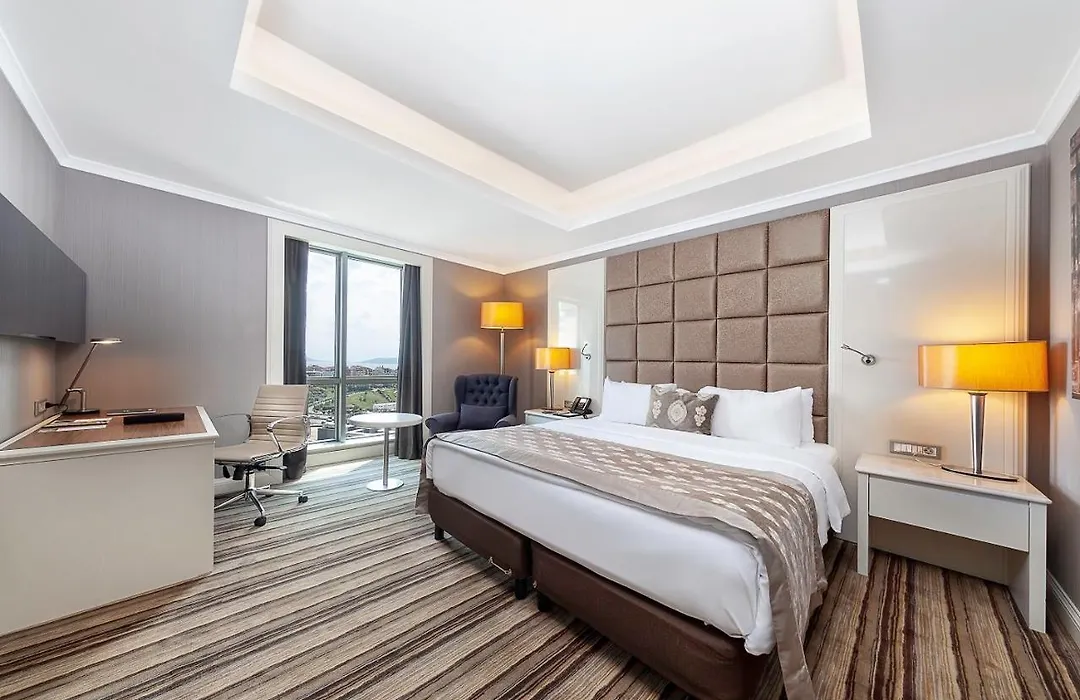 Nestled in the Atasehir district of Istanbul, 3.7 km from the Ülker Sports Arena, the wonderful Dedeman Bostanci Istanbul Hotel & Convention Center features a swimming pool and views of the city. The 5-star hotel serves European dishes and offers a Turkish steam bath and a Jacuzzi, boasting a setting just a stroll from an underground station.